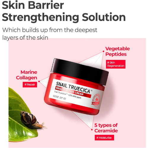 SOME BY MI Snail Truecica Miracle Repair Cream | Made From Snail Mucin For Sensitive Skin | Daily Repair Face Moisturizer For Acne Marks & Strengthen Skin Barrier | 2.02Oz, 60Gm