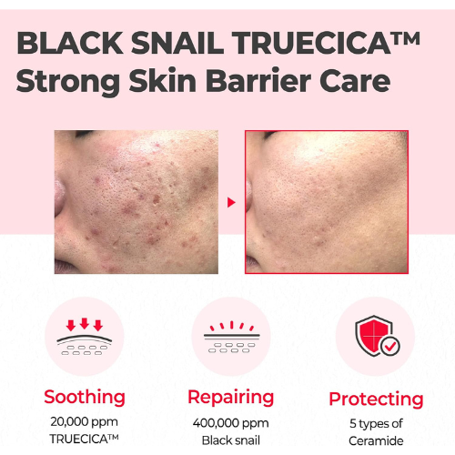 SOME BY MI Snail Truecica Miracle Repair Cream is packed with Snail Truecica to boost skin repair through improved skin regeneration. Formulated with 420,000 ppm of Snail Truecica which consists of black snail and 5 types of ceramide components. The black snail’s viscous mucus is highly condensed to deliver active ingredients and moisture to skin effectively This helps strengthen the skin barrier that can protect skin from external stress. Highly recommended for sensitive, dry and scarred skin. This cream can be applied to any skin type without leaving stickiness. and leaving only the softness.