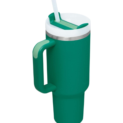 Constructed of recycled stainless steel for sustainable sipping, our 40 oz Quencher H2.0 offers maximum hydration with fewer refills. Commuting, studio workouts, day trips or your front porch—you’ll want this tumbler by your side. Thanks to Stanley’s vacuum insulation, your water will stay ice-cold, hour after hour. The advanced FlowState™ lid features a rotating cover with three positions: a straw opening designed to resist splashes while holding the reusable straw in place, a drink opening, and a full-cover top. The ergonomic handle includes comfort-grip inserts for easy carrying, and the narrow base fits just about any car cup holder.
