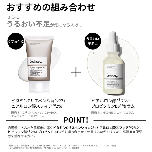 - Well-known for It’s brightening properties, The Ordinary has placed vitamin C in It’s pure form of L-Ascorbic Acid at the centre of Vitamin C Suspension 23 percent + HA Spheres 2 percent