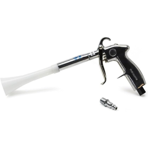The TORNADOR Air Blow Out tool works with your air compressor to blow debris and moisture out of hard-to-reach areas of a vehicle. Use the TORNADOR Air Blow Out tool inside or outside the vehicle. The strong, tornado-like funnel of air blasts out dirt and dust quickly and easily. The TORNADOR Air Blow Out Gun has the same cone shape as the TORNADOR Car Cleaning Tool and TORNADOR Air Foam tool. The cone channels air into a powerful tornado-like motion that quickly lifts dirt and moisture from any surface. The cone covers a larger area than the air flow coming directly from an air compressor, yet it is still targeted enough to concentrate tremendous air power right where your vehicle needs it.