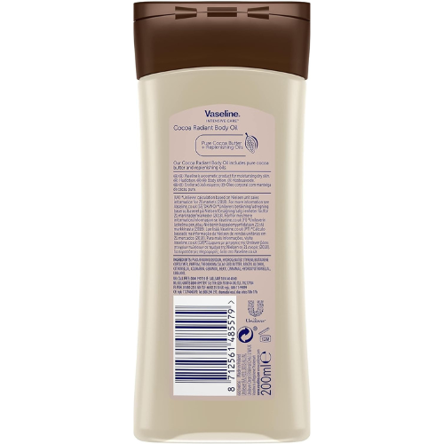 Heal dry, dull skin and revitalise thanks to Vaseline oils and serums, such as the Vaseline Intensive Care Cacao Radiant Body Gel Oil. We believe healthy looking skin starts with deep moisturisation. In Intensive Care Cocoa Radiant Body Gel Oil, we have combined pure cocoa and replenishing oils. The result is a body gel oil that revives dry and dull-looking skin for a healthy glow. Vaseline Intensive Care Cocoa Radiant Body Gel Oil has been formulated with cocoa butter, warm fragrance to help your skin not only look healthy but smell great. Cocoa butter is an oily substance that is extracted from cocoa beans – the same cocoa beans that are used to make chocolate. While it may not taste quite as good, cocoa butter has many benefits. Cocoa butter benefits the skin because it is a great emollient, which means it works to moisturize deep down to keep skin soft and supple. Its thick consistency makes it ideal for keeping skin moisturized in winter. Cocoa butter is also ideal for areas prone to especially dry or rough skin like the elbows, knees and heels while micro droplets of Vaseline Jelly are ideal to lock in moisture. For better results, use in the morning or evening, preferably after a bath or shower. Warm your hands and then massage generously all the way from the ankles to the waist, then from the wrists to the shoulders and finally all over the upper body. Vaseline body serums help to heal dry skin. This cocoa radiant gel oil soothes dry ed skin.