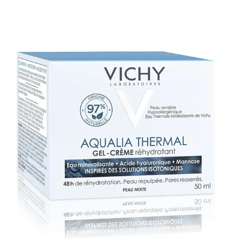 Vichy Aqualia Thermal Light Re-Moisturizing Cream is a lightweight face moisturizer for combination skin to normal skin offers intense hydration, using 97 percen5t naturally derived ingredients, including hyaluronic acid, fortifying Vichy mineralizing water, and plant sugar mannose. Skin is instantly dewy-fresh, feels comfortable, stays hydrated for up to 48 hours and are as reinforced even under climate variations, stress, or pollution. Comes in 50 ml size.
