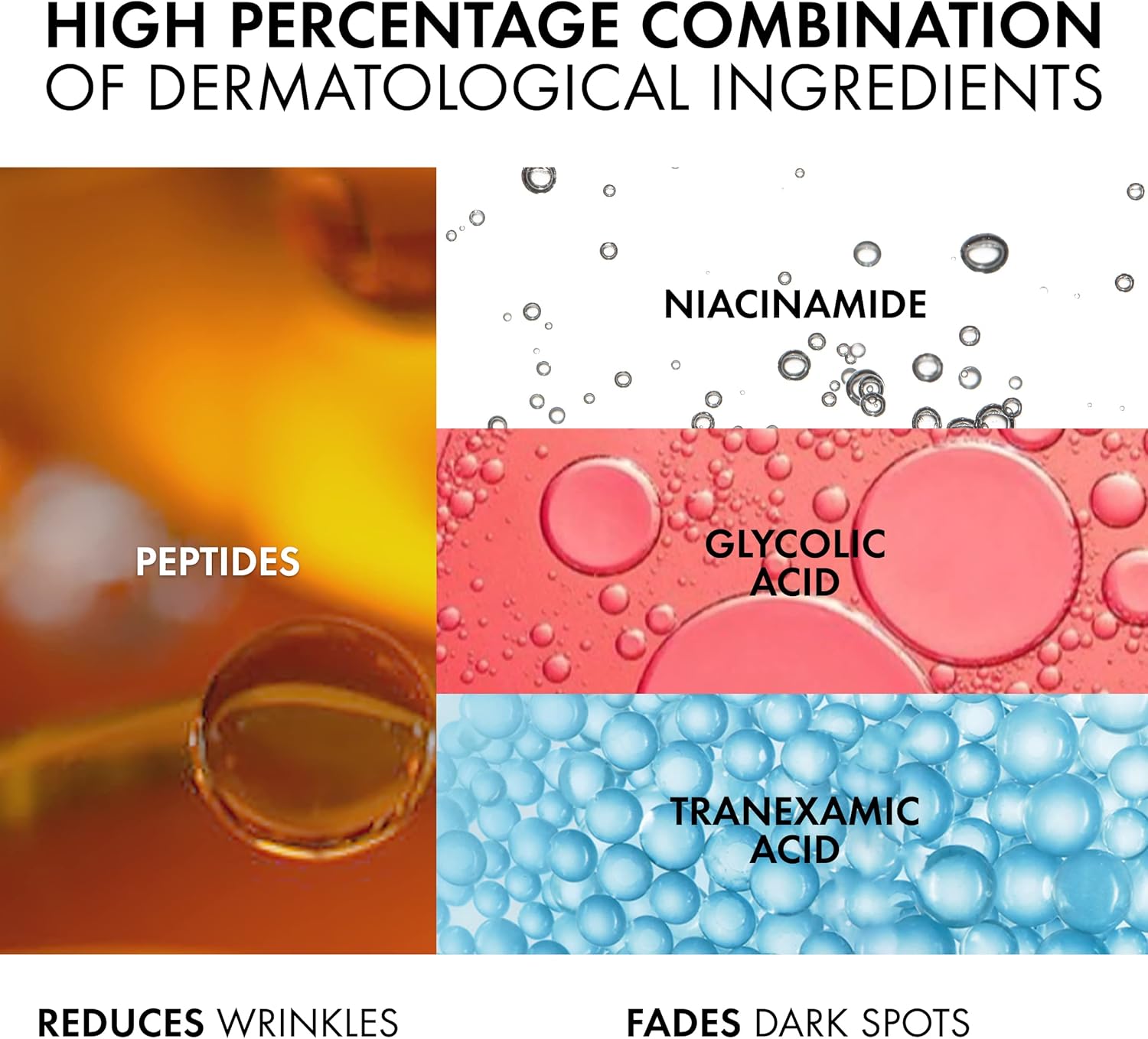 With consistent use, the serum has been shown to significantly reduce the intensity of dark spots and improve skin tone over time. It is hypoallergenic and free from alcohol, fragrance, and silicones, making it ideal for daily use. For best results, apply a few drops to clean, dry skin in the morning and evening before moisturizer. Since it contains exfoliating acids, it is recommended to follow with sunscreen during the day to protect the skin from UV damage.