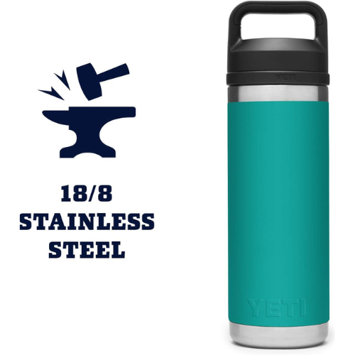 YETI Rambler 18 oz Bottle, Vacuum Insulated, Stainless Steel with Chug Cap, Aquifer Blue