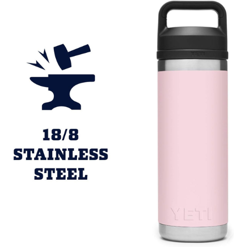YETI Rambler 18 oz Bottle, Vacuum Insulated, Stainless Steel with Chug Cap, Ice Pink