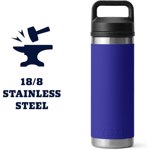 YETI Rambler 18 oz Bottle, Vacuum Insulated, Stainless Steel with Chug Cap, Offshore Blue