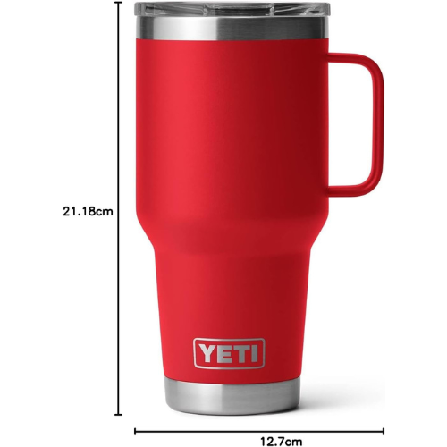 YETI Rambler 30 oz Travel Mug, Stainless Steel, Vacuum Insulated with Stronghold Lid, Rescue Red