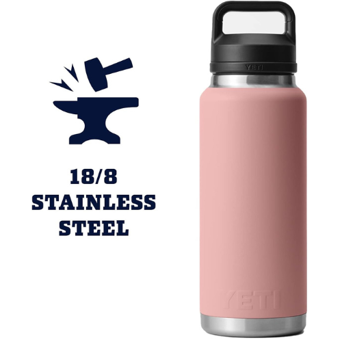 YETI Rambler 36 oz Bottle, Vacuum Insulated, Stainless Steel with Chug Cap, Sandstone Pink