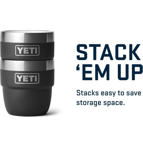 YETI Rambler 4 oz Stackable Cup, Stainless Steel, Vacuum Insulated Espresso/Coffee Cup, 2 Pack, Black